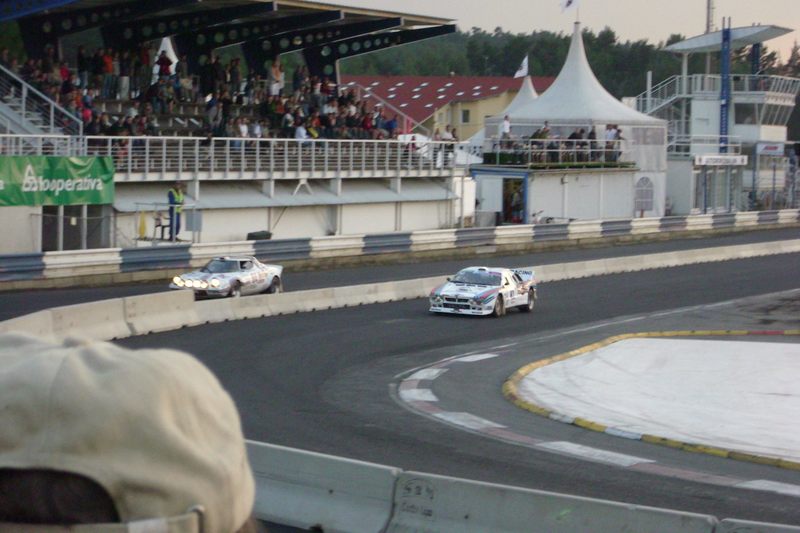 Když jsme našim mazlíkům dopřáli oddechu, přilítli ostrý účastníci Rallye Bohemia. Byla to pěkná podívaná, ale ta pravá třešinka na dortu měla teprve přijít. Přijeli historici a to byl teprve ten pravej nářez. Někdo jel na krev, někdo opatrně, ale vždy bylo na co koukat. Při trochu vlažnější jízdě Fiatu Abarth jsem řek, že jsem zvědav na Stratosy a kolega prohlásil, že s autem za pět mega pojedou klidnou. A jeli. To byla taková kláda, no nádhera, a aby to nestačilo, daly si to víckrát. Asi se jim to líbilo. Když už vše pomalu utichlo a vrátili jsme se k autům, na okruhu ještě něco zahřmělo a skrz tribuny se mihly známé siluety. V tu chvíli sem byl na tribuně. Podívaná vskutku adrenalinová. Dva Stratosy v těsném závěsu nedarující si ani centimetr. Něco takového se jen tak nevidí a pro mě to byl orgasmus.